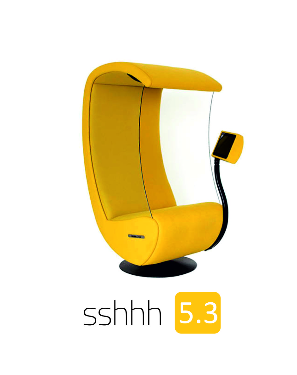 sshhh 5 - akustické křeslo bez audio vybavení, absorbuje a tlumí hluk okolí, vytváří tichý prostor pro vaši práci, četbu a relaxaci