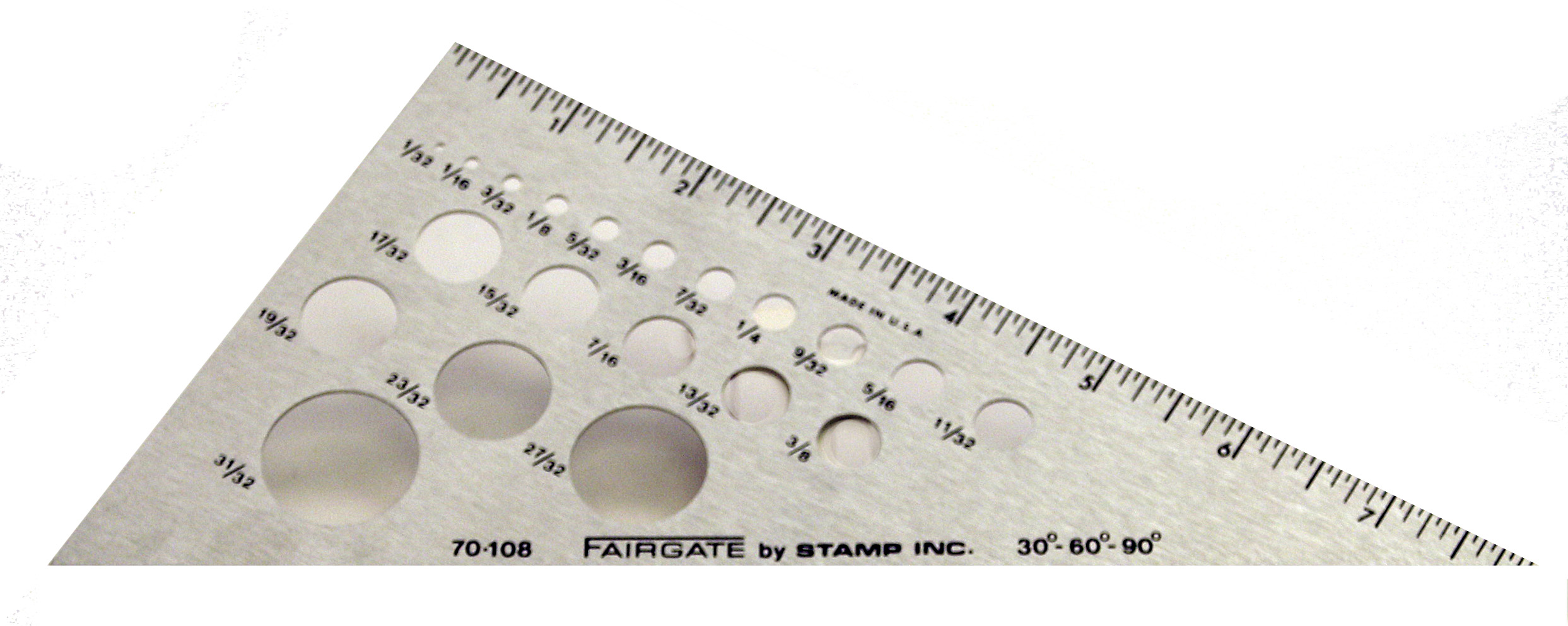 Hliníkové pravítko - trojúhelník s kružnicemi, délka 30 cm.
